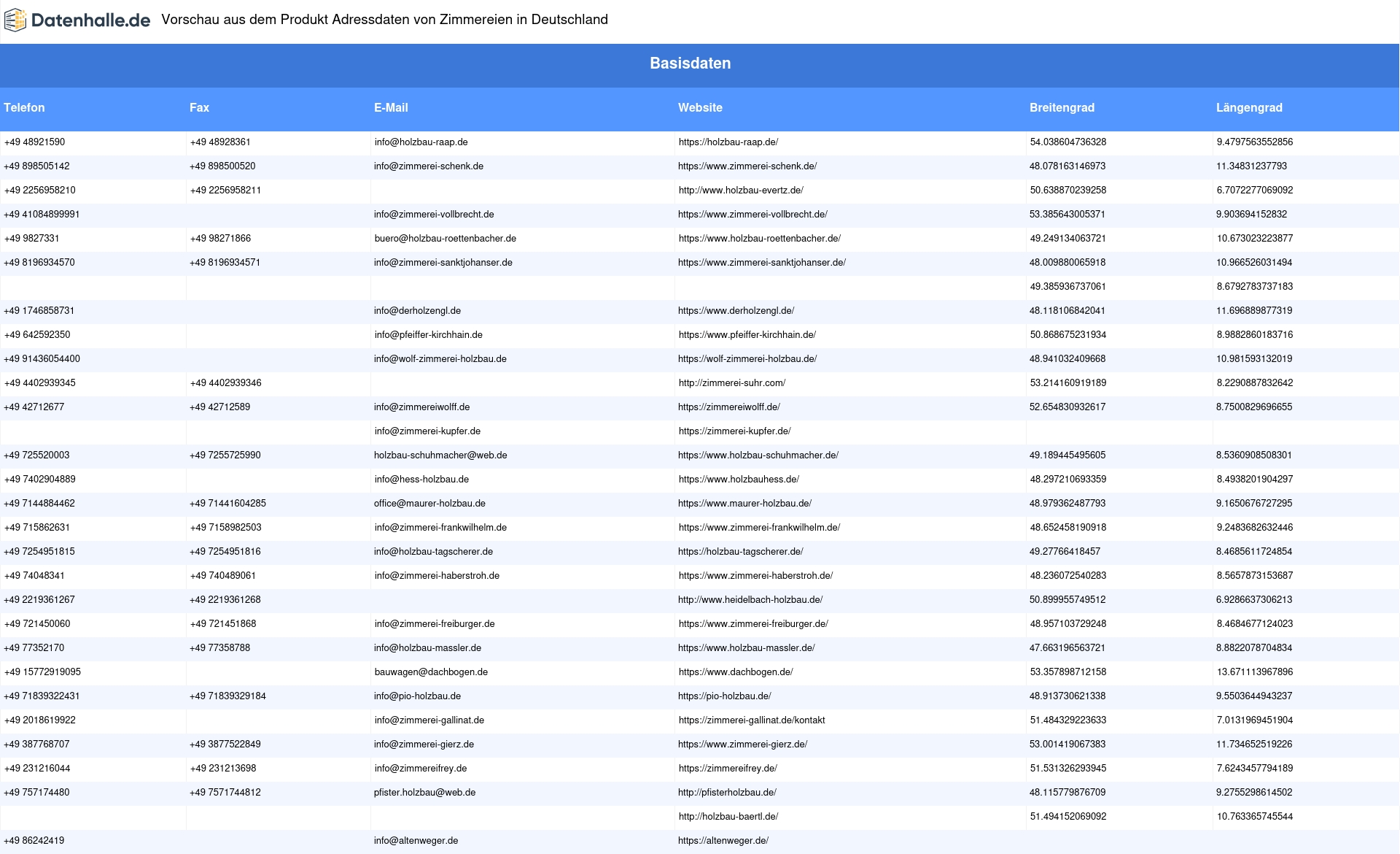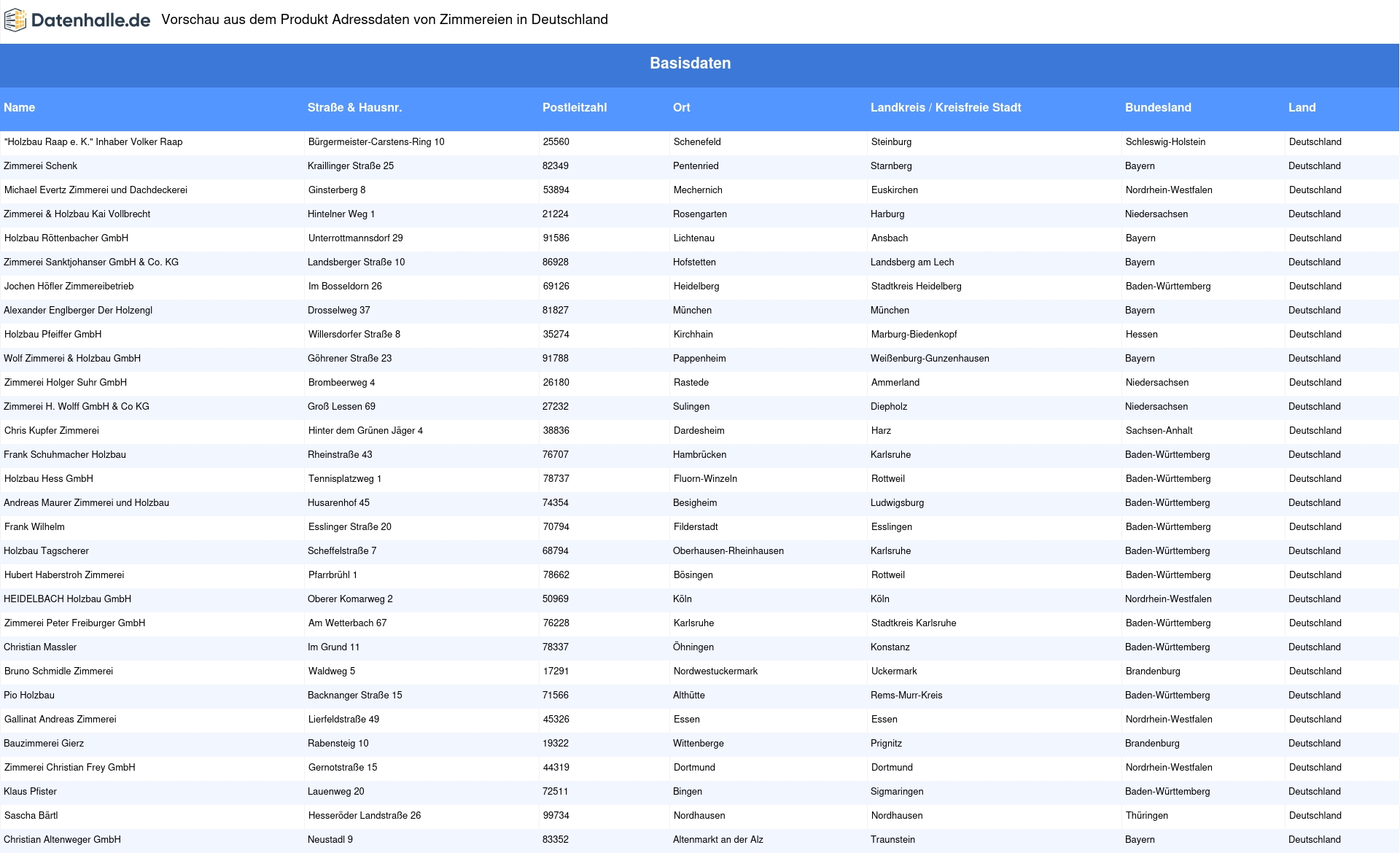Adressen von Zimmereien in Deutschland kaufen